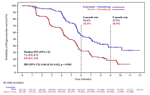 图1. 依沃西单抗联合化疗和安慰剂联合化疗相比PFS获益显著