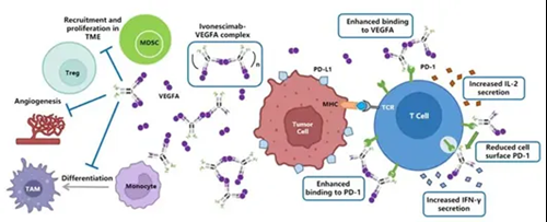 EGFR-TKIs显著延长了具有EGFR突变的晚期NSCLC患者的无进展生存期(PFS)。然而,EGFR-TKI治疗失败后,后续治疗往往显示出非常有限的临床疗效,抗PD-(L)1单药治疗在EGFR-TKI耐药后患者中并未显示出生存获益,同时联合治疗安全性也不高[1-3]。急需开发新策略以改善这类患者的疗效和预后。临床前研究结果显示抗血管内皮生长因子(VEGF)和抗PD-(L)1抗体具有协同抗肿瘤活性。在晚期实体瘤中,抗PD-(L)1抗体与抗血管生成药物联合使用也被发现具有相当的抗肿瘤活性和可耐受的安全性。IMpower 150的3期研究表明贝伐珠单抗联合阿替利珠单抗和化疗一线治疗可改善晚期非鳞状NSCLC患者的总生存。此外,雷莫西尤单抗(VEGFR-2单抗)也被发现与帕博利珠单抗联合治疗既往接受过治疗的晚期NSCLC患者具有良好的抗肿瘤活性。因此,抗VEGF(R)抗体和抗PD-(L)1抗体对无驱动癌基因改变的晚期NSCLC患者具有重要的临床意义。依沃西单抗是抗PD-1和VEGF-A人源化双特异性抗体,其抗PD-1 ScFv附着在每个抗VEGF抗体重链的c末端[4]。与单独使用抗PD-(L)1和抗VEGF疗法相比,同时阻断PD-1和VEGF可能会产生增强的抗肿瘤活性,并具有更高的安全性。此外,基于依沃西单抗开展的前期临床研究显示:83例入组的患者中,可评估的具有EGFR突变的患者为19例,在这类EGFR突变的患者中,整体ORR为68.4%,提示依沃西单抗在此类人群中具备有前景的抗肿瘤活性(ASCO 2022)。