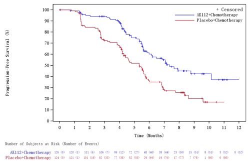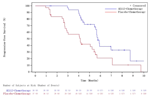 依沃西单抗联合化疗在3个月(94.7%对69.7%)、6个月(55.4%对33.1%)和9个月(37.9%对18.3%)的无进展生存期率均高于单独化疗。