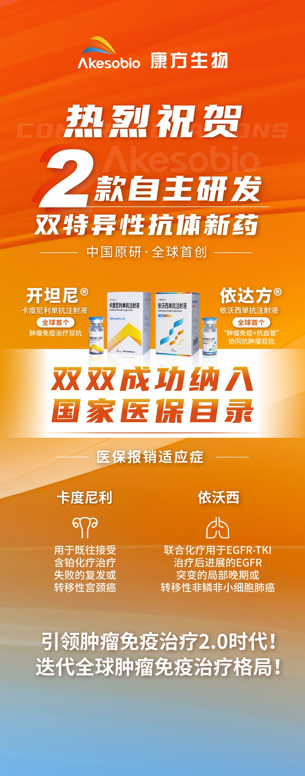 11月28日,安博官方网页版生物(9926.HK)欣然宣布,公司2个独立自主研发的全球首创双特异性抗体药物——开坦尼®(卡度尼利单抗注射液,PD-1/CTLA-4双抗)和依达方®(依沃西单抗注射液,PD-1/VEGF双抗)均已经被纳入《国家基本医疗保险、工伤保险和生育保险药品目录(2024年)》(“国家医保目录”,自2025年1月1日起正式执行)。