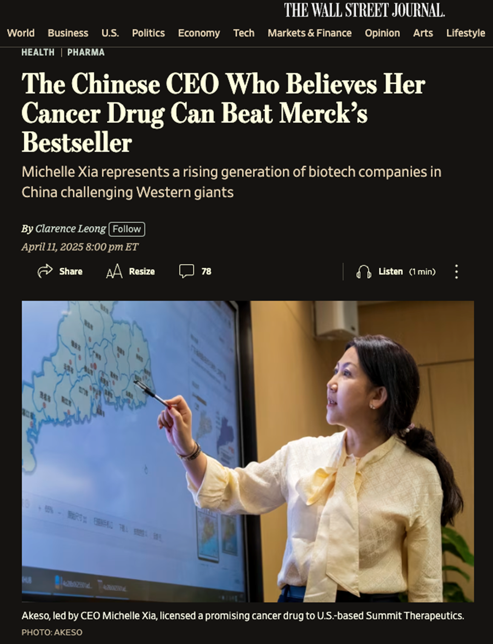 https://www.wsj.com/health/pharma/ivonescimab-akeso-michelle-xia-cancer-keytruda-d731f982