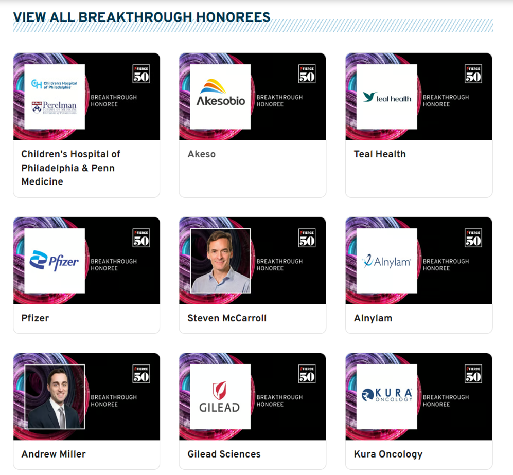 作为全球生物医药领域极具影响力的年度评选,Fierce 50奖项专门表彰推动医学进步、塑造行业未来的个人和机构。其中 "突破性奖项"(Breakthrough) 更是聚焦那些通过科学贡献实质性改善全球健康福祉的先行者,其评选标准不仅关注技术创新的前沿性,更重视对患者生存质量的实际提升。