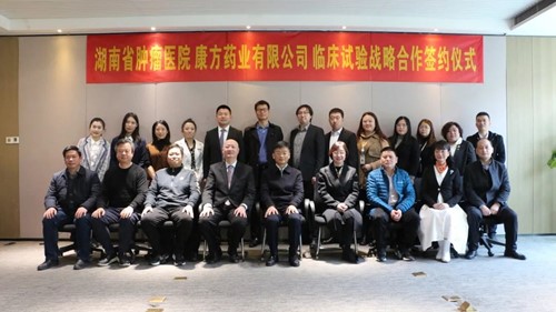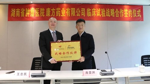 湖南省肿瘤医院院长肖亚洲、副院长王静、GCP办公室李坤艳主任,安博官方网页版生物高级副总裁王忠民及相关领导出席了签约仪式。