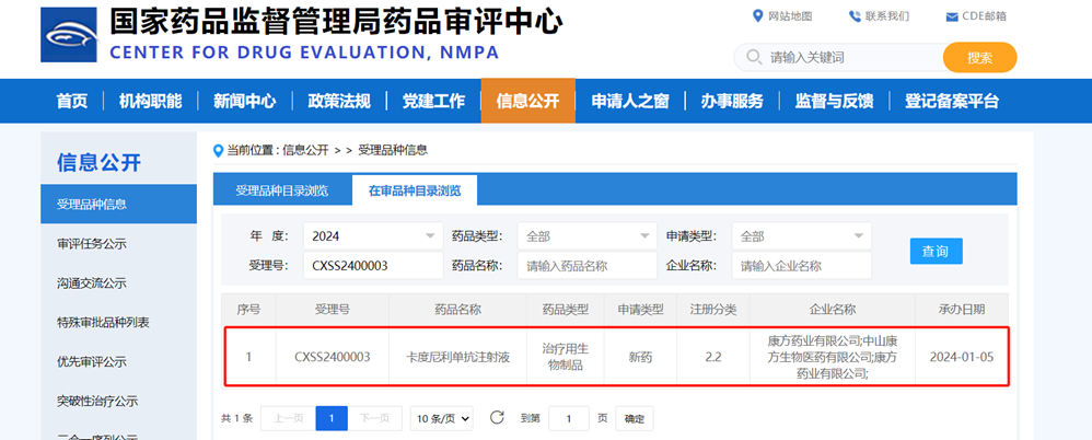 2024年1月5日,国家药品监督管理局药品审评中心(CDE)官网显示,安博官方网页版生物(9926.HK)独立自主研发的PD-1/CTLA-4双特异性抗体开坦尼®(卡度尼利单抗注射液),联合奥沙利铂和卡培他滨(XELOX)用于一线治疗不可手术切除的局部晚期复发或转移性胃或胃食管结合部(G/GEJ)腺癌的新药上市许可申请(NDA)已被受理。这是继单药治疗既往接受含铂化疗治疗失败的复发或转移性宫颈癌适应症在2022年6月获批上市后,开坦尼®在中国申报上市的第二项适应症。