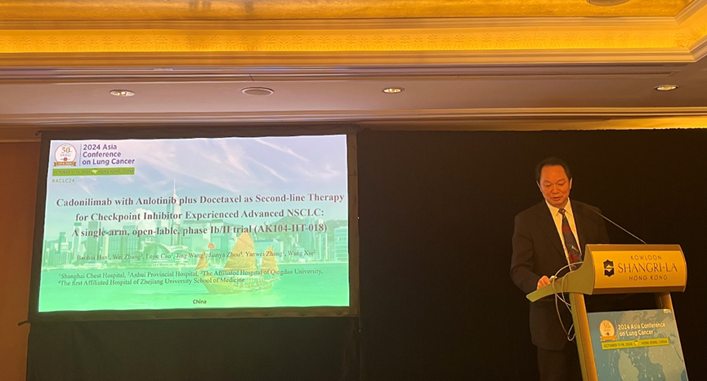 HONG KONG, December 4, 2024 -- Akeso, Inc. (9926.HK) ("Akeso" or the "Company") announced the results from a prospective, open-label, single-arm, multi-center phase Ib/II clinical study (AK104-IIT-018) of cadonilimab (PD-1/CTLA-4 bispecific antibody) in patients with advanced or metastatic non-small cell lung cancer (NSCLC) who had progressed after prior PD-(L)1 inhibitor treatment, were presented at the 2024 Asian Conference on Lung Cancer (ACLC).